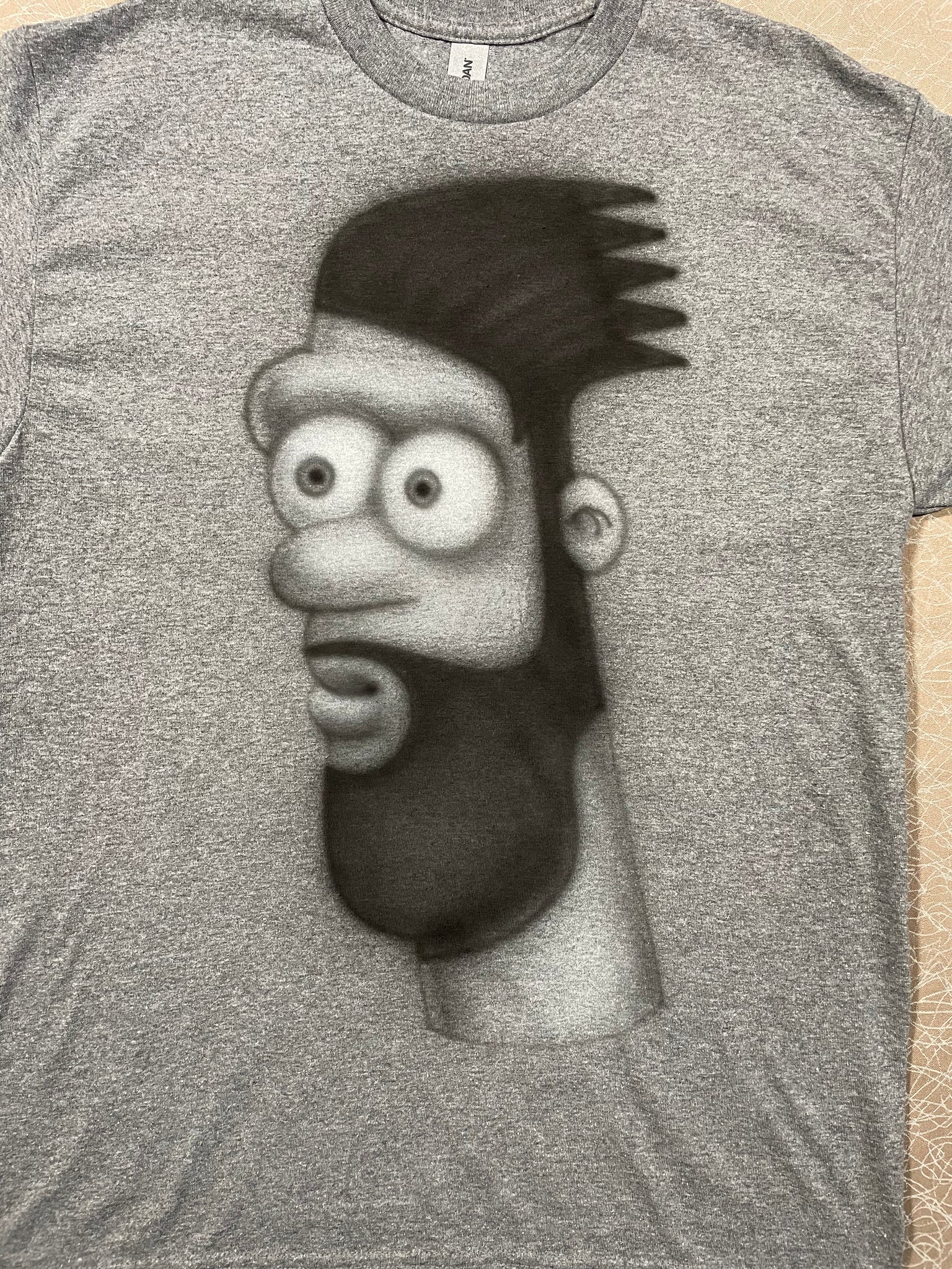 One of a kind, airbrushed art on a “heavy cotton” Gildan t-shirt. Size: Medium. All airbrushed clothing has been heat set.
